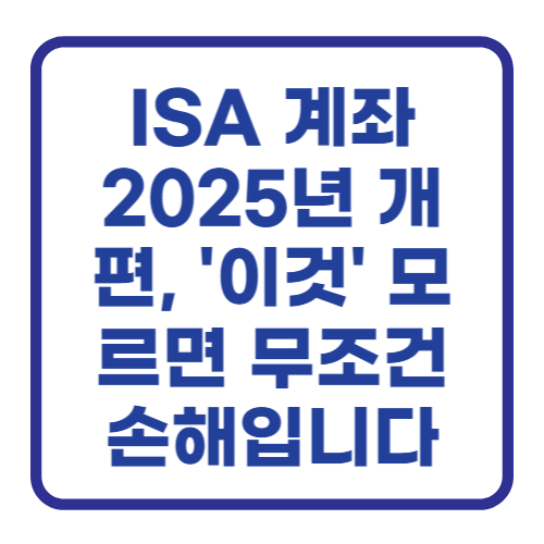 2025년 ISA 계좌, 핵심만 다시보기!